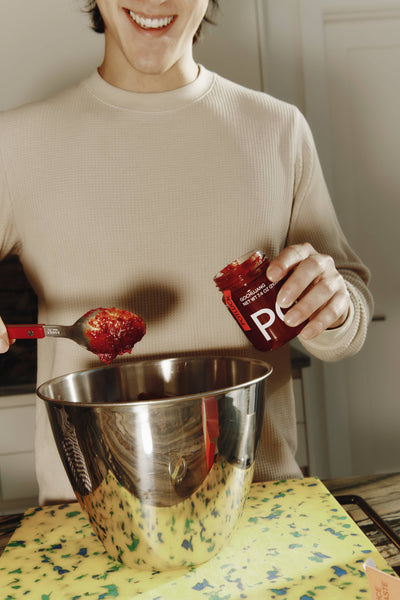 GOCHU 고추 [CHILI PEPPER] + JANG 장 [SAUCE OR PASTE] An everyday cooking paste that’s spicy, savory and a bit sweet. Good for marinating, zhuzhing, dipping and mixing. Add to anything that could use a punch of flavor. A little goes a long way.