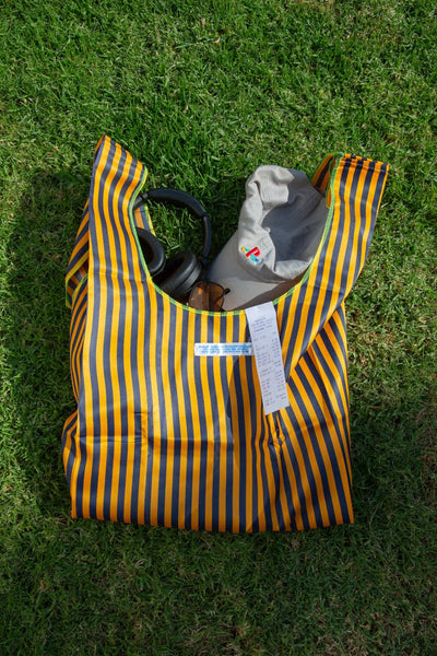 Bring some fun to your everyday routine with our School Tie Fabric Bag. Featuring a variety of vibrant striped patterns, this bag is perfect for grocery runs or casual walks. Its lightweight, durable design allows you to carry your essentials with ease, and the unique fabric adds a bit of flair to your look. Whether you’re hitting the farmer’s market or out for a stroll, this bag is a practical and stylish choice for any outing. Product Overview * Available Colors: * Dark Green x Pink * Light Blue x White * Navy Blue x Orange * Navy Blue x White * Pink x Yellow * Red x Light Blue * Yellow x Gray * Green x Light Blue * Dimensions (approx.): 17.3"W x 7.8"D x 26.7"H * Material: Polyester Note: Some of the edges of the fabric are finished using a lock sewing machine. As you use it, the threads at the lock part may become frayed or the edges of the fabric may become frayed. There may be weaving scratches or fraying on the fabric. There is also some dirt (see last image). PUEBCO was born
